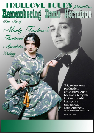 In this the first show produced exclusively by Truelove Tours, Manly returned for another deliciously outrageous comedy of bitterness, recriminations, and non-stop lies! Our irrevocably intoxicated hero recounted the full, unexpurgated, and more than likely libellous tale of his notorious Mother, Hermione Truelove: Dame of the British Theatre, Pillar of the Establishment and International Revolutionary Communist. It’s all here: from her early days treading the boards, through her involvement in the Cuban Revolution, to her fateful journey to a Dallas Book Depository in November 1963…